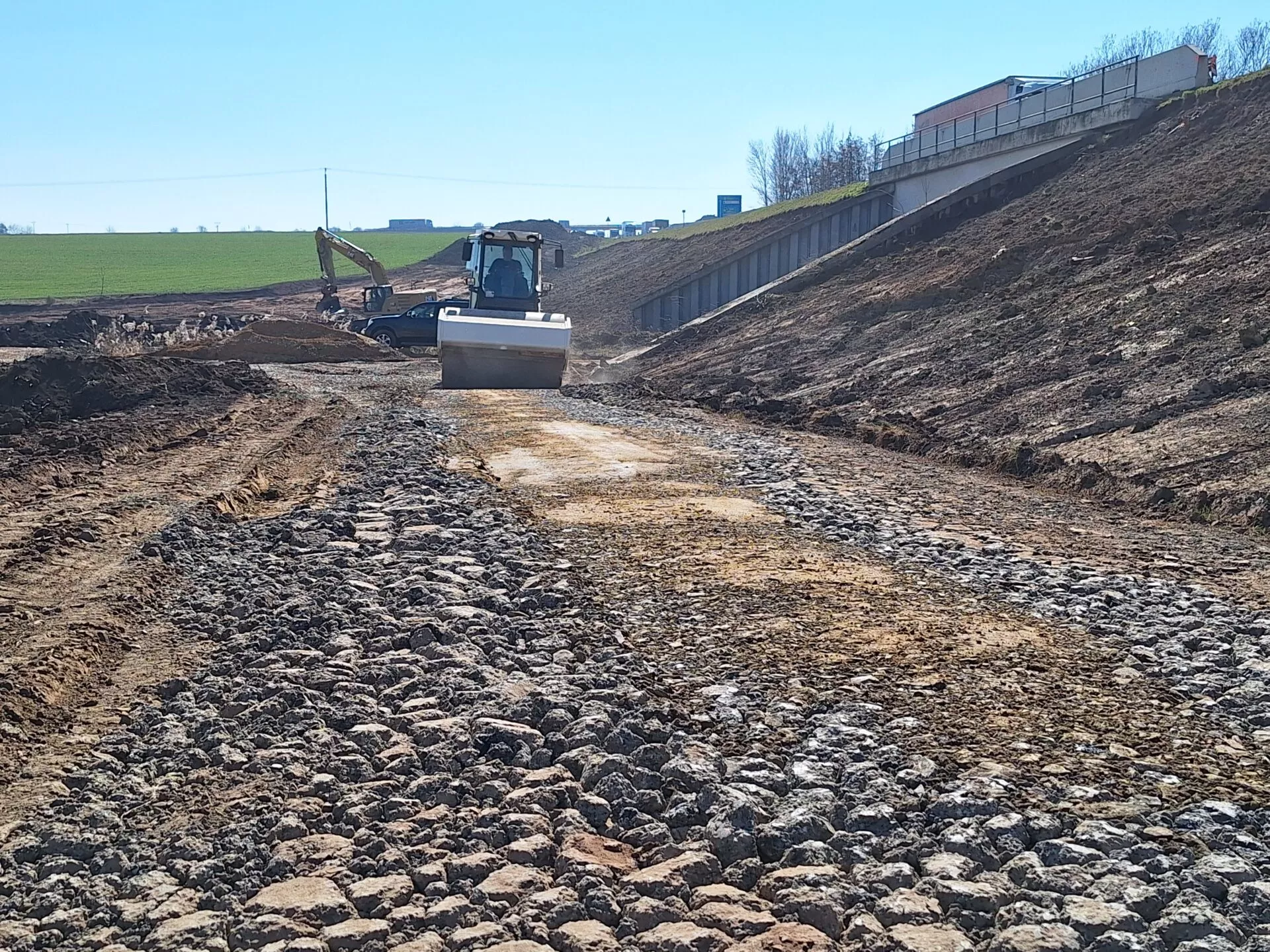 Zemní práce se odehrávají také na dalších středočeských úsecích budoucí dálnice. Harmonogram se daří naplňovat, jeho cílem je v první řadě vystavět nové jízdní pásy dálnice vedle stávající silnice I/7. Po jejich dokončení na ně převedeme dopravu a silnici I/7 postupně přebudujeme na druhý jízdní pás dálnice. Toto řešení umožní efektivnější postup prací a zejména na plynulost dopravy od něj očekáváme pozitivní dopad.
